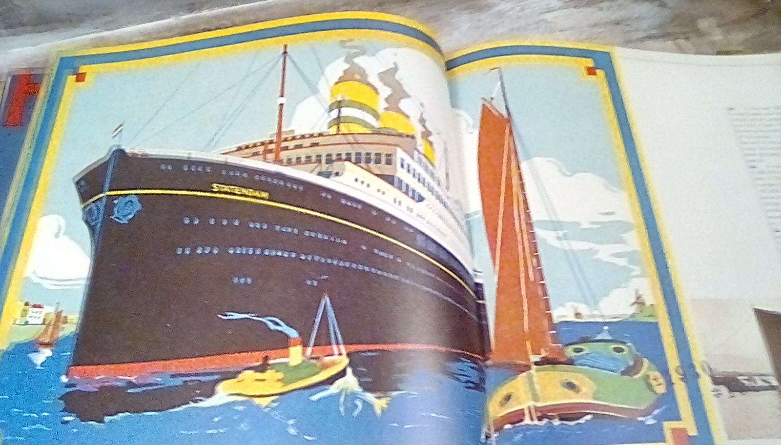 This is a really interesting book. There are old ads used by Holland American Lines, there are old pictures of crew members and passengers. There are also maps and essays from passengers. There are news articles by reporters and other stories and facts about different routes back and forth from America to Europe. It covers both world wars and everything in between. And imagine my surprise when I turned a page and found a recipe. Just about everything ended up in this book by two writers with the same name, Dick Schaap. Would be the perfect gift for anyone interested in sea travel and history. The photos and illustrations are also worth of framing...but it would be a shame to destroy this book. The new editions are going for over $100.