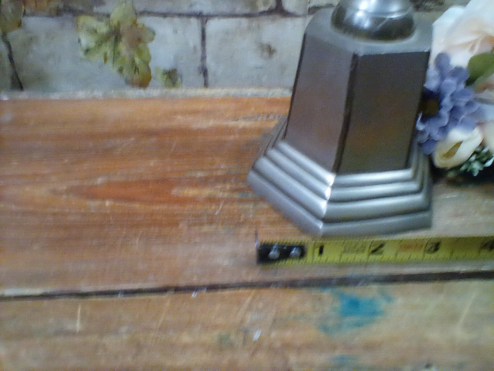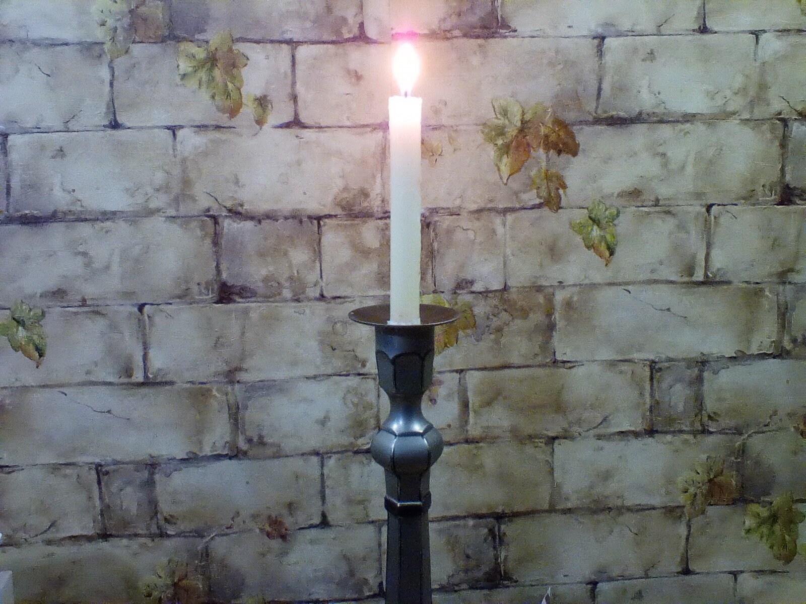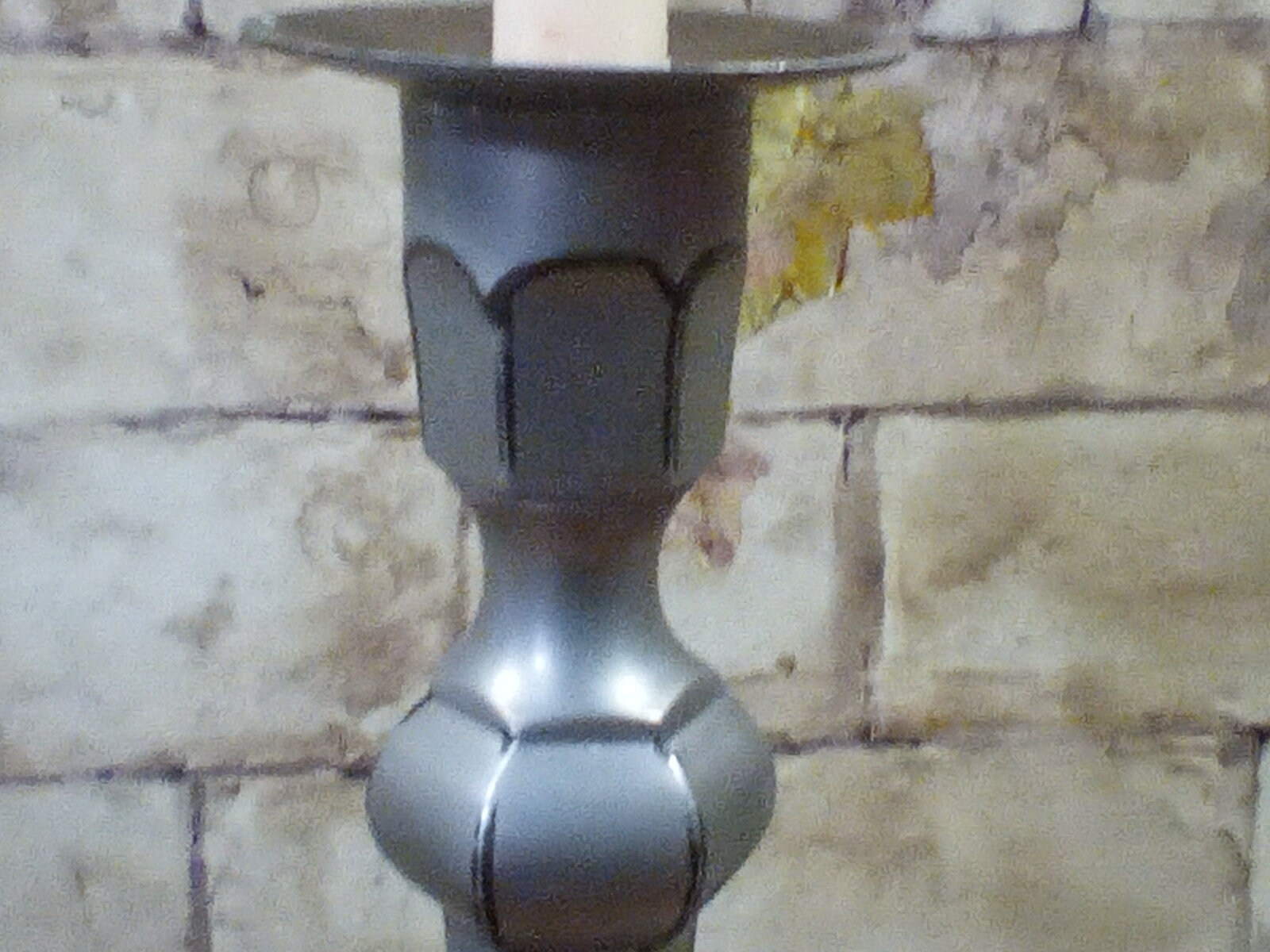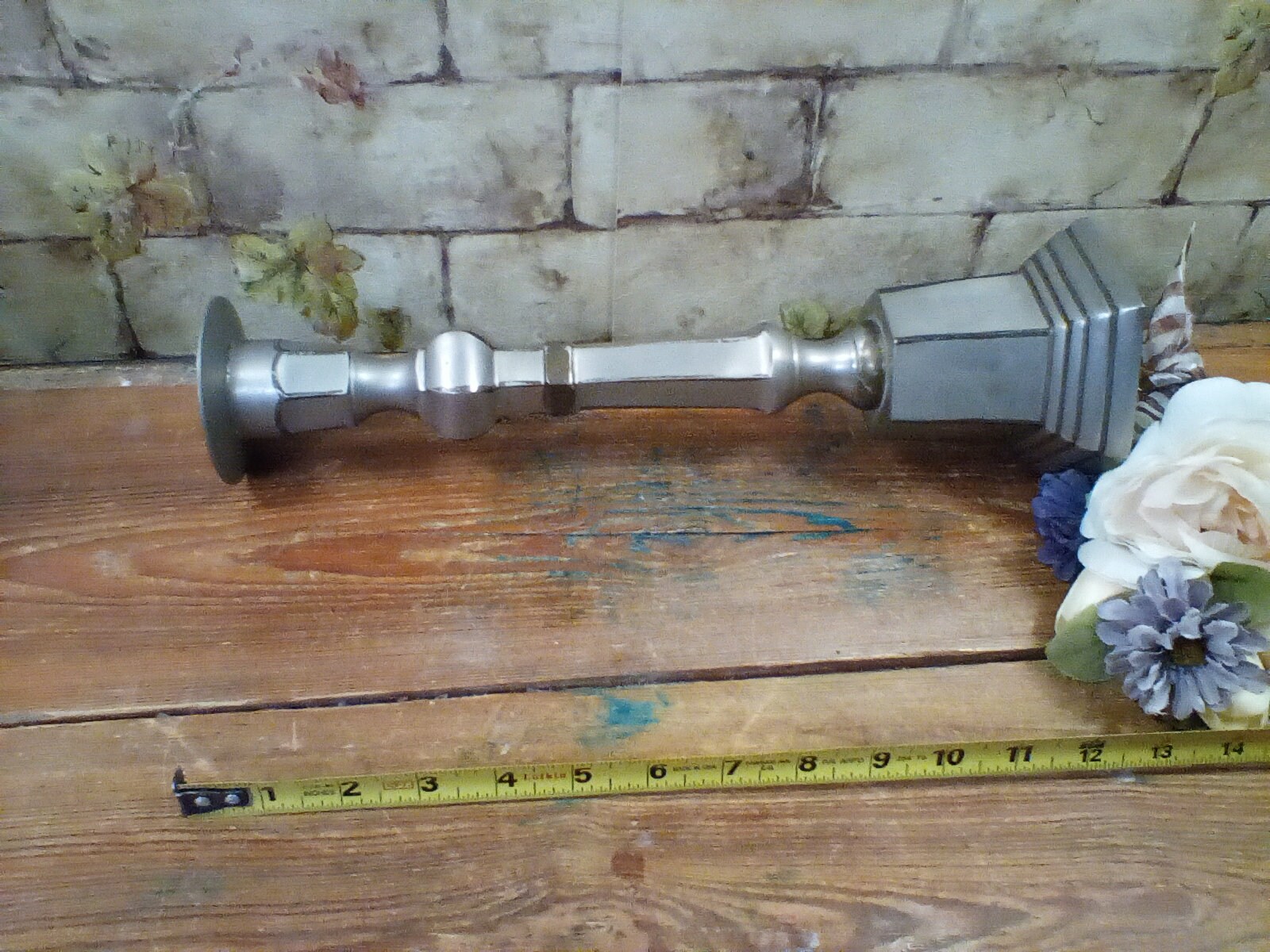 Candlestick is 14" Tall and Has Distressed Silver Look. Heavy Metal Made in India, Holds Taper Candle but Could Hold Small Pillar.